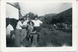 Grupo de habitantes de Calle Larga : Blanca Triviño, Ramón Muñoz, Julio Muñoz [Fotografía]. Chile : [Editor no identificado] , 1966. 1 Fotografía : Formato digital. .