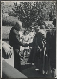 Bienvenida de autoridades locales a sacerdote : Hugo Jordán Guerra [Fotografía]. Chile : [Editor no identificado] , [1953]. 4 Fotografías : Formato digital. .