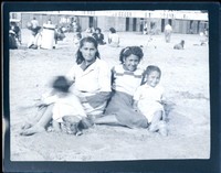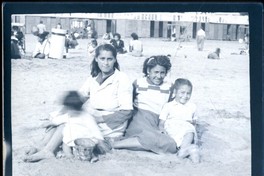 [Mujeres y niñas en balneario [Cartagena] [fotografía]. [Chile] : [entre 1930 y 1940]. 1 fotografía : negativo sobre papel ; 7 x 9 cm. .