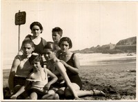[Familia en playa chica de Cartagena] [fotografía].