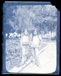 [Niñas en plaza Vergara] [fotografía]. [Viña del Mar, Chile] : [entre 1940 y 1950]. 1 fotografía : negativo sobre papel ; 9 x 7 cm. .
