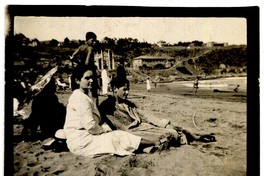 [Mujer y joven en balneario de Cartagena] [fotografía]. Cartagena : [entre 1930 y 1940]. 1 fotografía : monocromo, gelatina sobre papel fibra ; 4 x 5 cm .