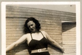 [Mujer con traje de baño en balneario de Algarrobo] [fotografía]. Algarrobo : 1941. 1 fotografía : monocromo, gelatina sobre papel fibra ; 14 x 9 cm .