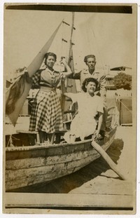 [Personas al interior de un bote] [fotografía]. Cartagena : 1949. 1 fotografía : monocromo, gelatina sobre papel fibra ; 14 x 9 cm .