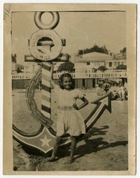 [Niña afirmada en imitación de ancla en balneario de Cartagena] [fotografía]. Cartagena : 1953. 1 fotografía : monocromo, gelatina sobre papel fibra ; 9 x 7 cm .