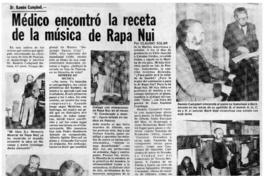 Médico encontró la receta de la música de Rapa Nui. [artículo] La Estrella (Valparaíso, Chile)-- mayo 4, 1985, p. 20. retr. .
