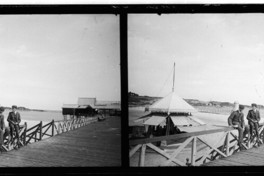 [Retrato de dos hombres en baranda del muelle de Montevideo] [fotografía] Julio Bertrand Vidal. Montevideo Uruguay, 1907 1 fotografía sobre placa de vidrio : monocroma estereoscópica ; 4,4 x 10,7 cm. .