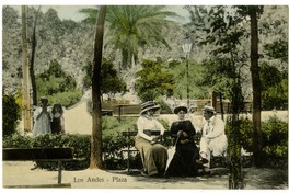 Materias: Historia - Fotografías - Chile - Vida social y costumbres - Los Andes (Chile) - Hombres - Mujeres - Tarjetas postales - Arquitectura del paisaje - Moda - Plaza de Armas (Los Andes, Chile) - Los Andes - Villa Santa Rosa de Los Andes (Chile)