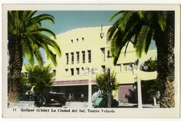 11 Quilpué (Chile) La Ciudad del Sol, Teatro Velarde [fotografía]. Quilpué : [Editor no identificado, Entre 1950 y 1960]. 1 tarjeta postal : fotografía, policromo gelatina sobre papel ; 14 x 9 cm. .