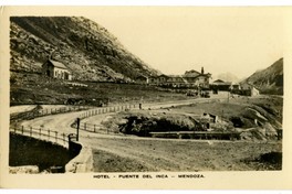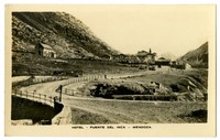 Hotel - Puente del Inca -Mendoza [En primer plano, la capilla de muros de piedra "Nuestra Señora de las Nieves", que aún permanece] [fotografía]. Argentina : [Editor no identificado , Entre 1915 y 1925]. 1 tarjeta postal : fotografía, monocromo gelatina sobre papel ; 13,2 x 7,1 cm. .