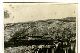 Argentina, Cordillera de Los Andes, Puente Inca : [Vista invernal de agujas de hielo, suspendidas de este puente natural; asimismo, se producen estalactitas e inflorescencias cálcicas] [fotografía]. Argentina : [Editor no identificado , Entre 1902 y 1912]. 1 tarjeta postal : fotografía, monocromo, gelatina sobre papel ; 8,3 x 13,5 cm. .