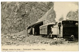 Refugio contra la nieve - Ferro-carril Trasandino, Chile [fotografía] / J. Allan. Valparaíso : J. Allan , [entre 1910 y 1920]. 1 tarjeta postal : colotipo, fotomecánico monocromo sobre papel ; 13,8 x 9 cm. .