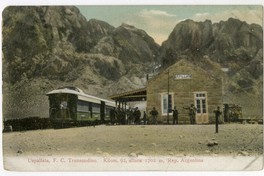 Materias: Historia - Fotografías - Los Andes (Chile) - Estaciones de ferrocarril - Tarjetas postales - Cordillera de los Andes - Ferrocarril Trasandino Chileno - Ingeniería de ferrocarriles - Ferrocarril Trasandino Argentino - San Lorenzo del Valle de Uspallata - Uspallata (Argentina) - Rosauer, Roberto