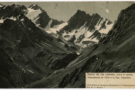 Sierra de los Leones, sobre el camino Internacional de Chile á la Rep. Argentina [fotografía] / R. Rosauer. Chile : R. Rosauer, 1916. 1 fotografía : monocromo, gelatina sobre papel ; 13,8 x 9 cm. .