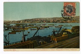 Valparaiso, Bahia [fotografía] / Mattensohn & Grimm. Valparaíso : Mattensohn & Grimm , 1913. 1 tarjeta postal : medio tono, fotomecánico policromo sobre papel ; 14 x 9 cm. .