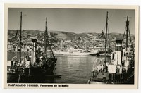 Valparaíso (Chile), Panorama de la Bahia [fotografía]. Valparaíso : [Editor no identificado , Entre 1939 y 1949]. 1 tarjeta postal : fotografía, monocromo, gelatina sobre papel ; 13,2 x 7,8 cm. .
