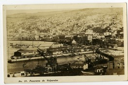 No. 21. Panorama de valparaiso [fotografía]. Valparaíso : [Editor no identificado , Entre 1930 y 1940]. 1 tarjeta postal : fotografía, monocromo, gelatina sobre papel ; 13 x 7,5 cm. .