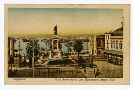 Valparaiso Plaza Soto mayor con Monumento Arturo Prat [fotografía] / Grimm & Kern. Valparaíso : Grimm & Kern , [entre 1911 y 1920]. 1 tarjeta postal : colotipo, fotomecánico policromo sobre papel ; 14 x 9 cm. .