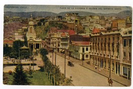 Valparaiso, Chile Plaza de la Victoria e Iglesia del Espíritu Santo [fotografía] Valparaíso : [Editor no identificado , Entre 1905 y 1915]. 1 tarjeta postal : fotografía, monocromo coloreado, gelatina sobre papel ; 14 x 9 cm. .
