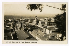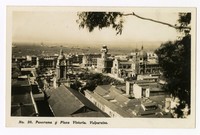 Panorama y Plaza Victoria, Valparaiso : [Entre otras construcciones: edificio del Periódico "La Unión", Iglesia Catedral y la Iglesia del Espíritu Santo] [fotografía].