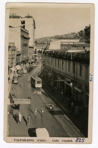 Valparaiso. (Chile). Calle Condell [fotografía]. Valparaíso : [Editor no identificado , 19uu]. 1 tarjeta postal : fotografía, monocromo, gelatina sobre papel ; 8 x 13 cm. .