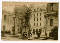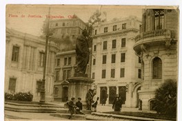 Materias: Escultura - Banco Italo-Belga (Valparaíso, Chile) - Palacio de los Tribunales de Justicia de Valparaíso (Chile) - Plaza de la Justicia (Valparaíso, Chile) - Valparaiso (Chile : Ciudad) - Historia - Fotografías - Arquitectura - Tarjetas postales - Urbanismo