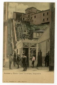 Materias: Ascensores - Compañía de Ascensores Mecánicos de Valparaíso (Chile) - Servicios de transporte público no tradicionales - Cerro Cordillera (Valparaíso, Chile) - Valparaiso (Chile : Ciudad) - Historia - Fotografías - Arquitectura