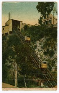 Materias: Cerro Concepción (Chile) - Compañía de Ascensores Mecánicos de Valparaíso (Chile) - Servicios de transporte público no tradicionales - Valparaiso (Chile : Ciudad) - Historia - Fotografías - Arquitectura - Tarjetas postales - Ascensores