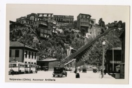 Materias: Historia - Fotografías - Arquitectura - Transporte urbano - Tarjetas postales - Ascensores - Urbanismo - Automóviles antiguos y clásicos - Cerro Artillería (Valparaíso, Chile) - Compañía de Ascensores Mecánicos de Valparaíso (Chile) - Servicios de transporte público no tradicionales - Frigoríficos - Valparaiso (Chile : Ciudad)