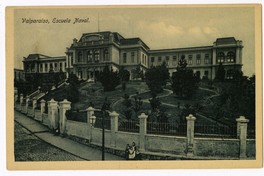 Valparaiso, Escuela Naval [fotografía] / Mattensohn & Grimm. Valparaíso : Mattensohn & Grimm , [entre 1910 y 1919]. 1 tarjeta postal : colotipo, fotomecánico monocromo sobre papel ; 14 x 9 cm. .