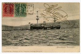 Materias: Valparaiso (Chile : Ciudad) - Tarjetas postales - Laurent, Henri - Vanherweck, J. - Presidente Errázuriz (Barco : Chile) - Weinreich Kirsinger, Reinaldo - Kirsinger, Carlos - Historia - Chile - Historia naval