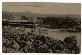 Baños de las Torpederas - Valparaiso [fotografía] / J. S. Rachitoff. Valparaíso : J. S. Rachitoff , [1913]. 1 tarjeta postal : colotipo, fotomecánico policromo sobre papel ; 13,7 x 8,7 cm. .