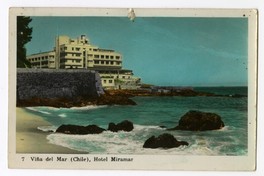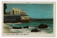 Viña del Mar (Chile), Hotel Miramar [fotografía]. Valparaíso : [Editor no identificado] , 1955. 1 tarjeta postal : fotografía, policromo, gelatina sobre papel fibra ; 14 x 9 cm. .