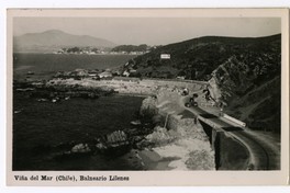 Viña del Mar (Chile), Balneario Lilenes [fotografía]. Chile : [Editor no identificado , Entre 1949 y 1959]. 1 tarjeta postal : fotografía, monocromo, gelatina sobre papel fibra ; 14 x 9 cm. .