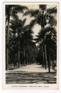 Quinta Vergara - Viña del Mar - Chile Chile : [Editor no identificado , Entre 1939 y 1950]. 1 tarjeta postal : fotografía, monocromo, gelatina sobre papel fibra ; 9 x 14 cm. .