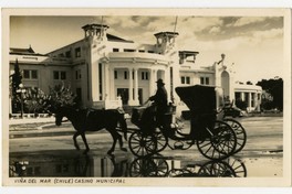 Viña del Mar (Chile) Casino Municipal [fotografía]. Chile : [Editor no identificado] , 1960. 1 tarjeta postal : fotografía, monocromo, gelatina sobre papel fibra ; 14 x 9 cm. .