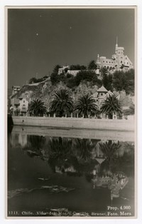 Chile. Viña del Mar.- Castillo Brunet [fotografía] / Foto: Mora. Chile : Foto: Mora , Entre 1939 y 1949]. 1 tarjeta postal : fotografía, monocromo, gelatina sobre papel fibra ; 9 x 14 cm. .