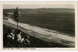 Viña del Mar Camino a Concon [fotografía]. Chile : [Editor no identificado , Entre 1917 y 1960]. 1 tarjeta postal : fotografía, monocromo, gelatina sobre papel fibra ; 14 x 9 cm. .