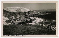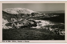 Viña del Mar (Chile), Camino a Concón [fotografía]. Chile : [Editor no identificado , Entre 1939 y 1950]. 1 tarjeta postal : fotografía, monocromo, gelatina sobre papel fibra ; 14 x 9 cm. .