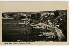 Viña del Mar (Chile), Camino a Concón [fotografía]. Chile : [Editor no identificado , Entre 1917 y 1960]. 1 tarjeta postal : fotografía, monocromo, gelatina sobre papel fibra ; 14 x 9 cm. .