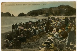 Concurrencia Balneario Playa de Constitución [fotografía] / Juan M. Sepúlveda V. Santiago : Juan M. Sepúlveda V. , [Entre 1912 y 1922]. 1 tarjeta postal : colotipo, fotomecánico policromo sobre papel fibra ; 14 x 9 cm. .