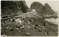 [Verano en la playa de Constitución] [fotografía]. Chile : [Editor no identificado , Entre 1925 y 1935]. 1 tarjeta postal : fotografía, monocromo, gelatina sobre papel fibra ; 14 x 9 cm. .