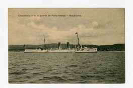 Chacabuco - en el puerto de Punta Arenas - Magallanes [fotografía] / Adolfo Kwasny. Punta Arenas : Adolfo Kwasny, [entre 1908 y 1910]. 1 colotipo : fotomecánico monocromo sobre papel ; 14 x 9 cm. .