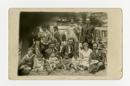 [Retrato grupal en la playa] [fotografía]. Chile : [Editor no identificado , Entre 1909 y 1920]. 1 tarjeta postal : fotografía, monocromo, gelatina sobre papel ; 14 x 9 cm. .