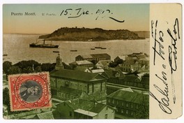 Puerto Montt. El Puerto [fotografía] / Emilio Winkler. Puerto Montt : Emilio Winkler , 1912. 1 tarjeta postal : medio tono, fotomecánico policromo sobre papel fibra ; 14 x 9 cm. .