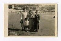 Cartagena 1935 [Grupo familiar en la playa] [fotografía] / Foto Carreño. Cartagena : Foto Carreño , 1935. 1 tarjeta postal : fotografía, monocromo, gelatina sobre papel fibra ; 14 x 9 cm. .