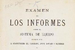 Examen de los Informes sobre el Sistema de equipo pasados por la Administración del Ferrocarril entre Santiago y Valparaíso al Consejo directivo Carlos F. Hillman.