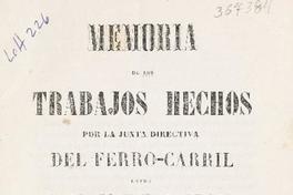 Memoria de los trabajos hechos por la Junta Directiva del Ferrocarril entre Santiago y Valparaíso.