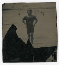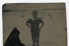 [Niño dándose un baño en la playa de Caldera] [Fotografía]. Chile : [Editor no identificado] , [ 19--]. 1 Fotografía : Formato digital. .