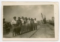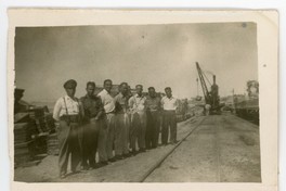 [Retrato grupal de trabajadores en el muelle de Caldera] [Fotografía]. Chile : [Editor no identificado] , 1959. 1 Fotografía : Formato digital. .